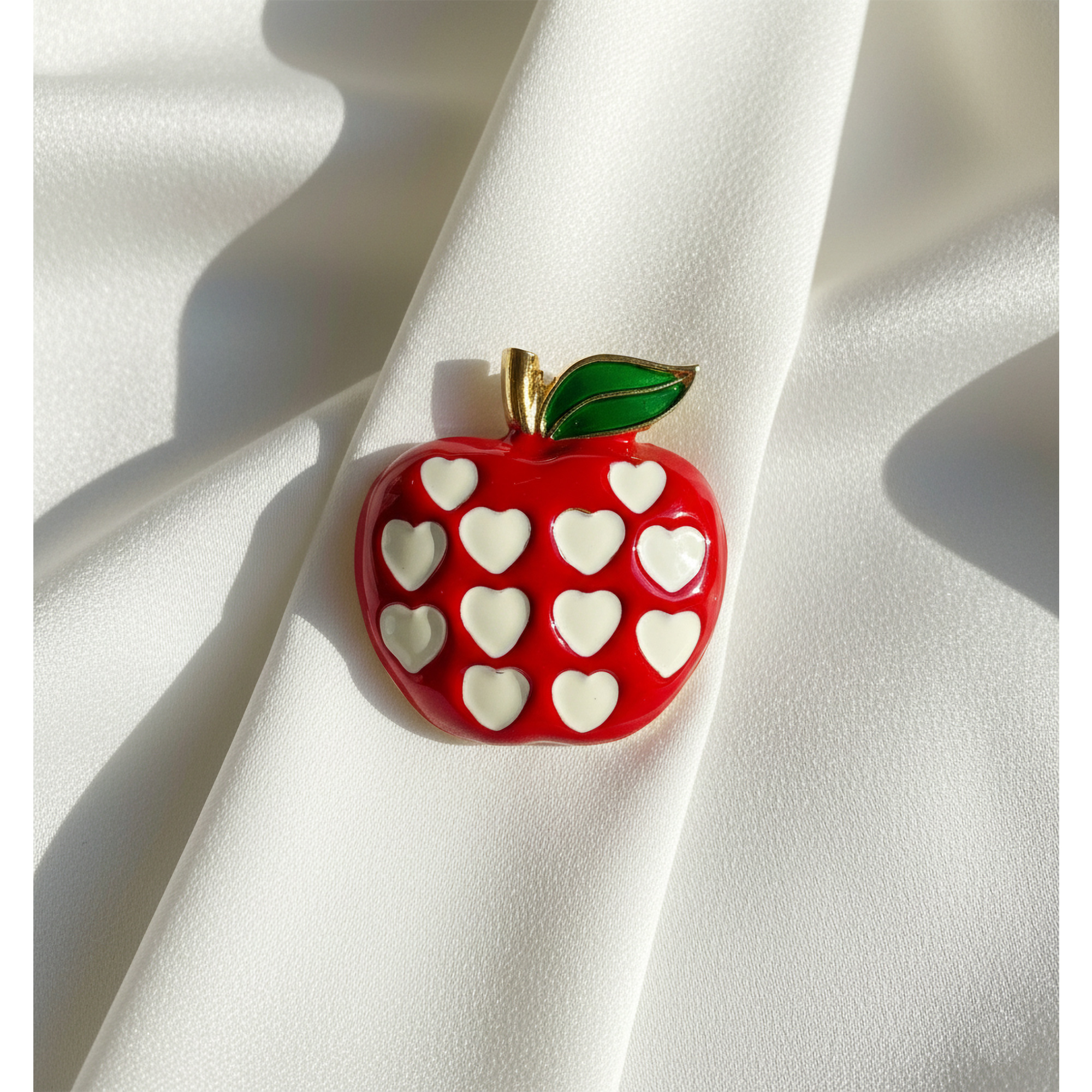 Red Apple Brooch with White Hearts