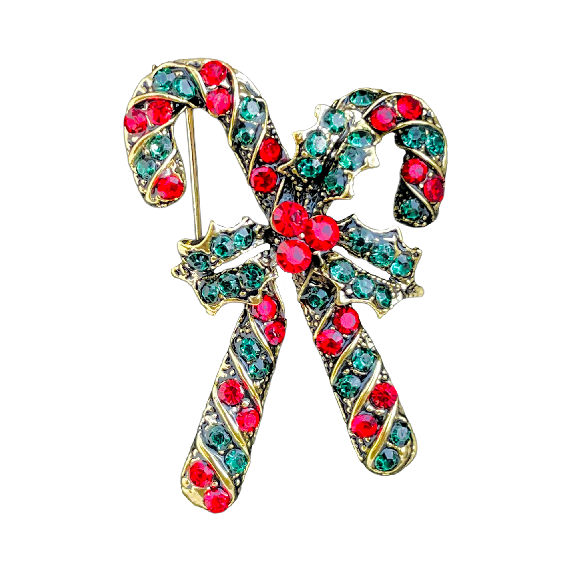 Be the first to review “Sparkling Red & Green Crystal Candy Cane Brooch”
